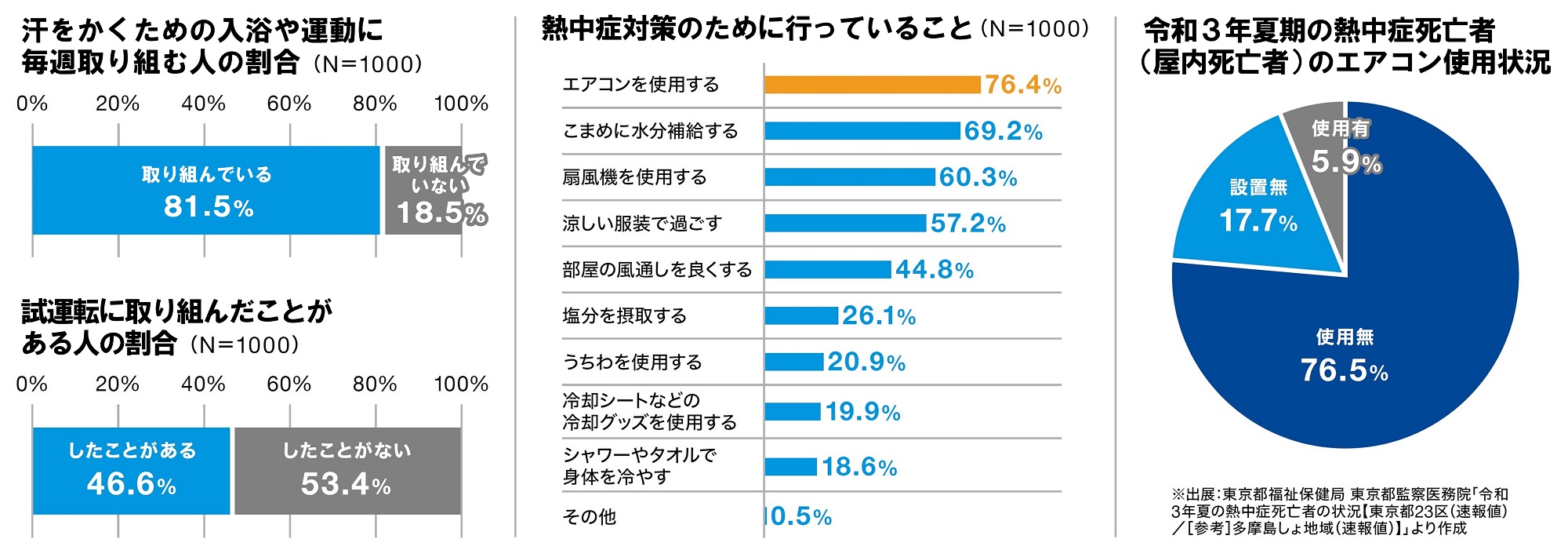 暑熱順化を意識して発汗に取り組む人は約8割、エアコン試運転経験者は5割以下