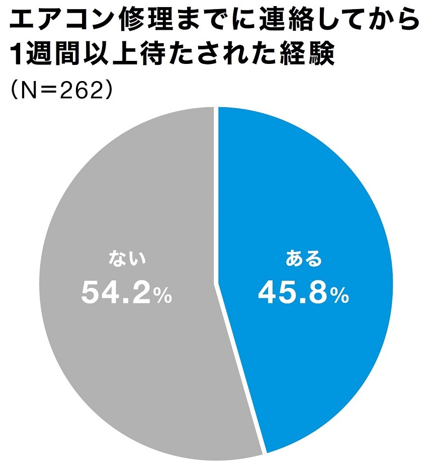 半数以上がエアコンの修理に一週間以上待たされたことを経験