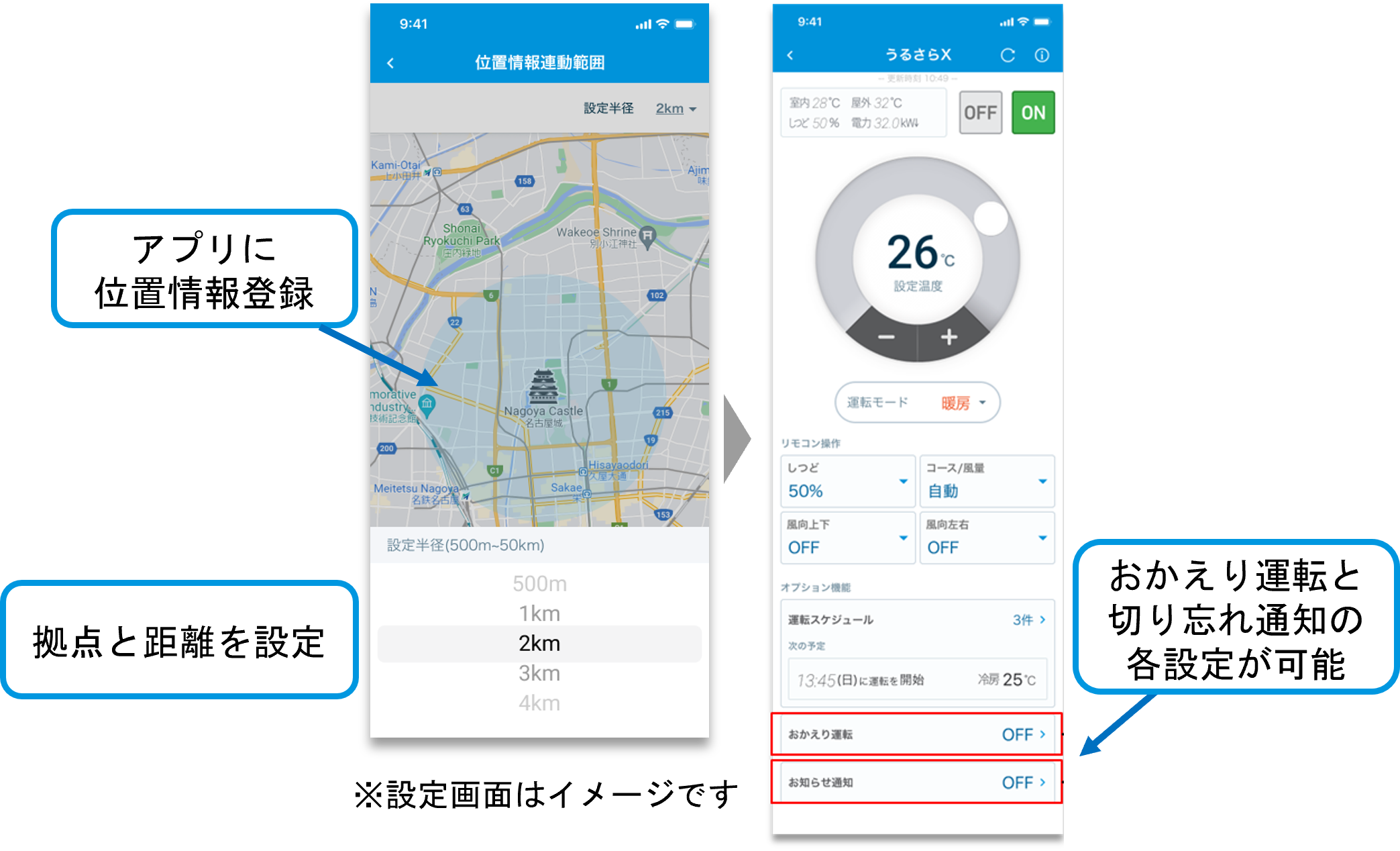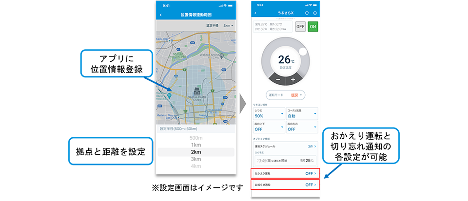 ・外出時に消し忘れをアプリで知らせる「おでかけ切り忘れ通知」で、無駄な電力消費を抑制。