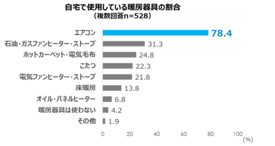 自宅で使われている暖房器具の第1位は「エアコン」(78.4%)