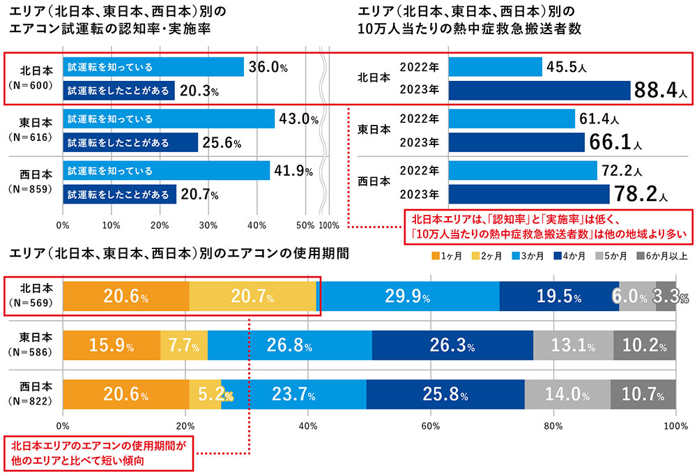 北海道・東北の実施率の向上と高齢者の適切なエアコン使用の重要性が浮き彫りに