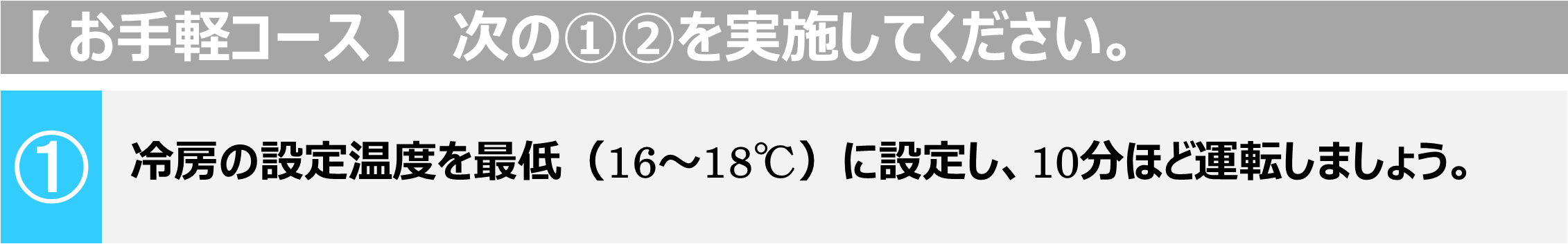 また、エアコンは室温が設定温度に到達すると室内を冷やす動作を停止するため、最低温度に設定しておくことで、室温が設定温度に早期に到達することを防ぎます。なお、最低温度は機種によって異なります。