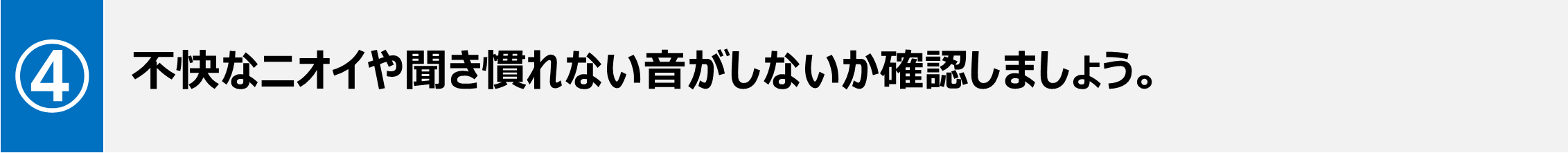 フィルターや熱交換器の汚れが過多となっている場合、嫌なニオイの原因になることがあります。また、振動が原因で異音に至るケースもあります。ぜひチェックをお願いします。