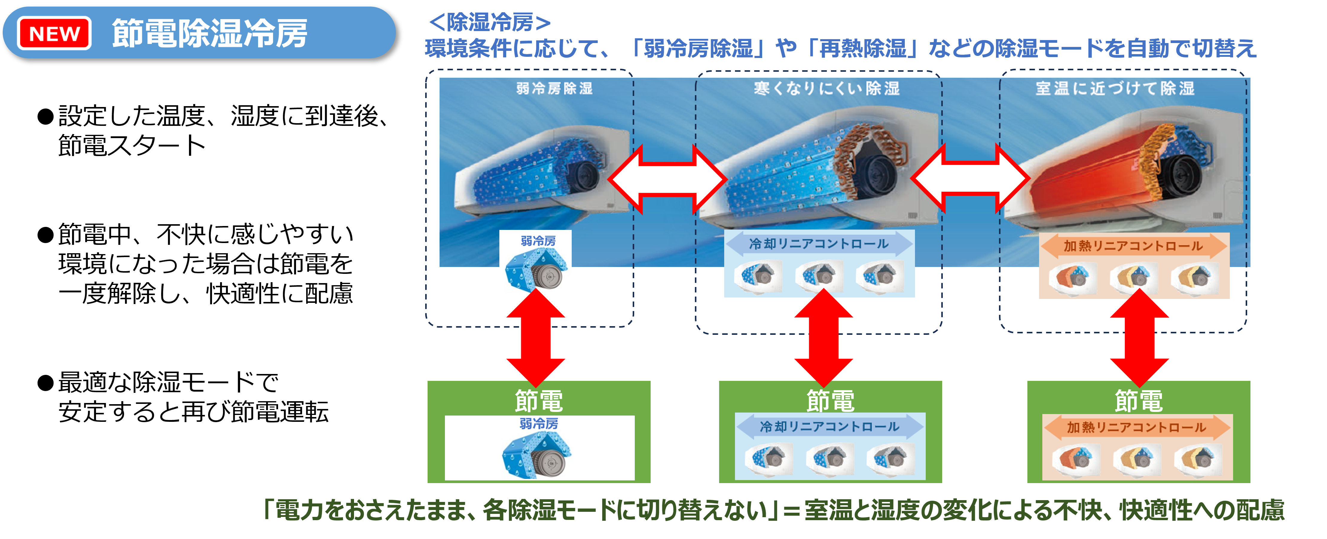消費電力量を削減する独自の「節電自動」が更に進化、湿度コントロールしながら節電に貢献