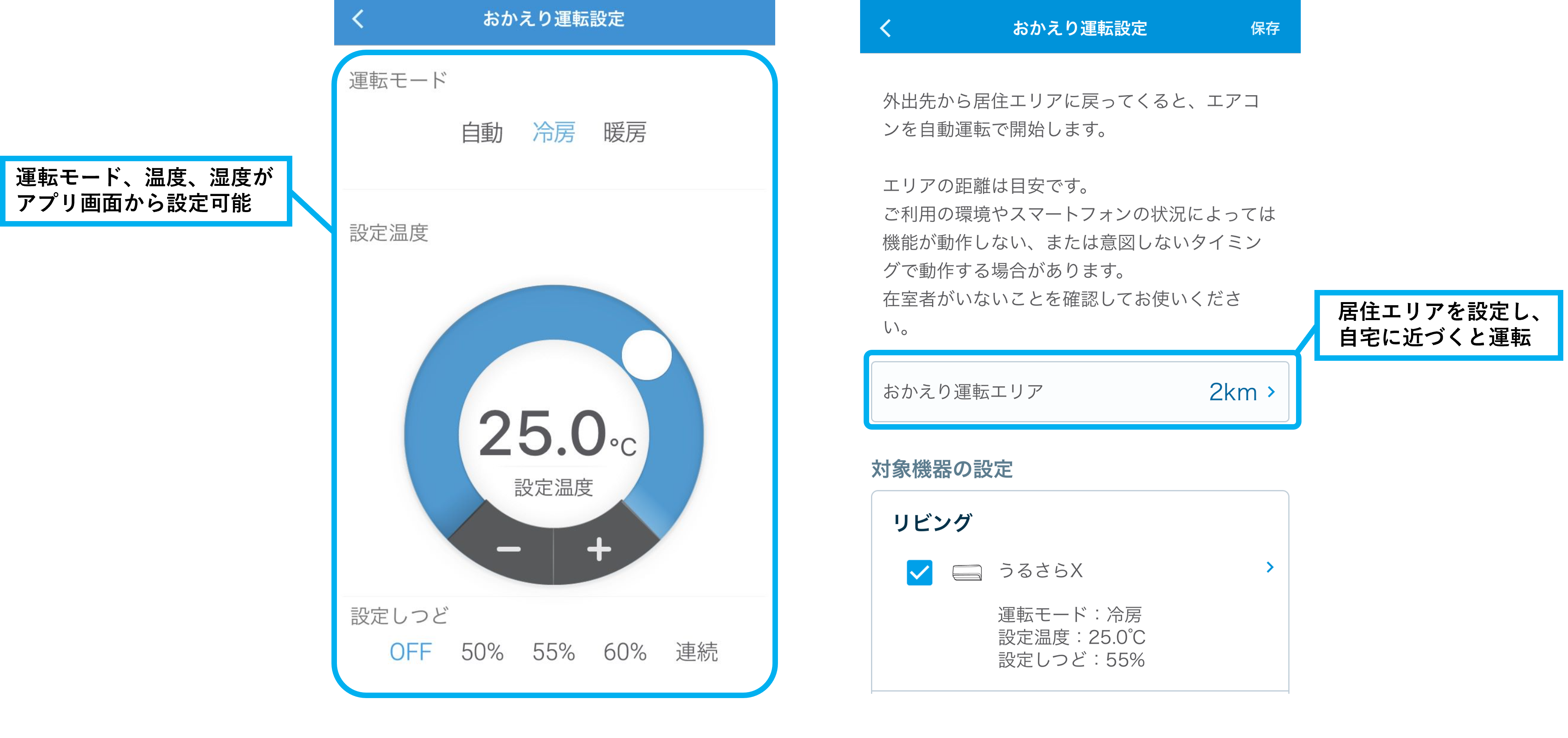 ※自動運転での「おかえり運転」は、湿度のみが設定可能となります。