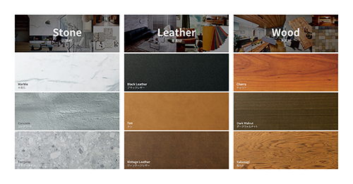 「NATURE」シリーズのラインアップは大理石、タン、チェリーの3種となります。