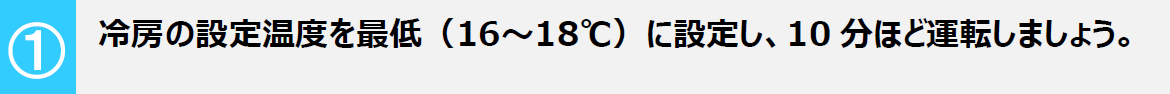 また、エアコンは室温が設定温度に到達すると室内を冷やす動作を停止するため、最低温度に設定しておくことで、室温が設定温度に早期に到達することを防ぎます。なお、最低温度は機種によって異なります。
