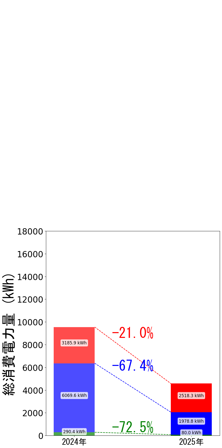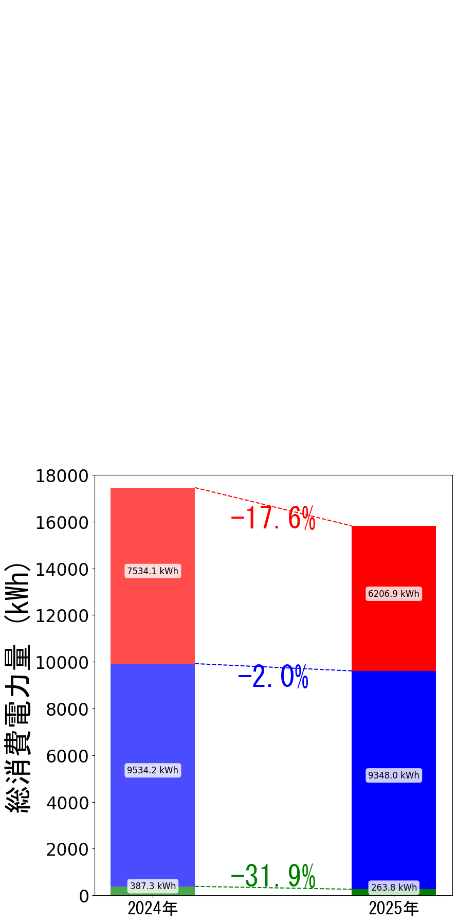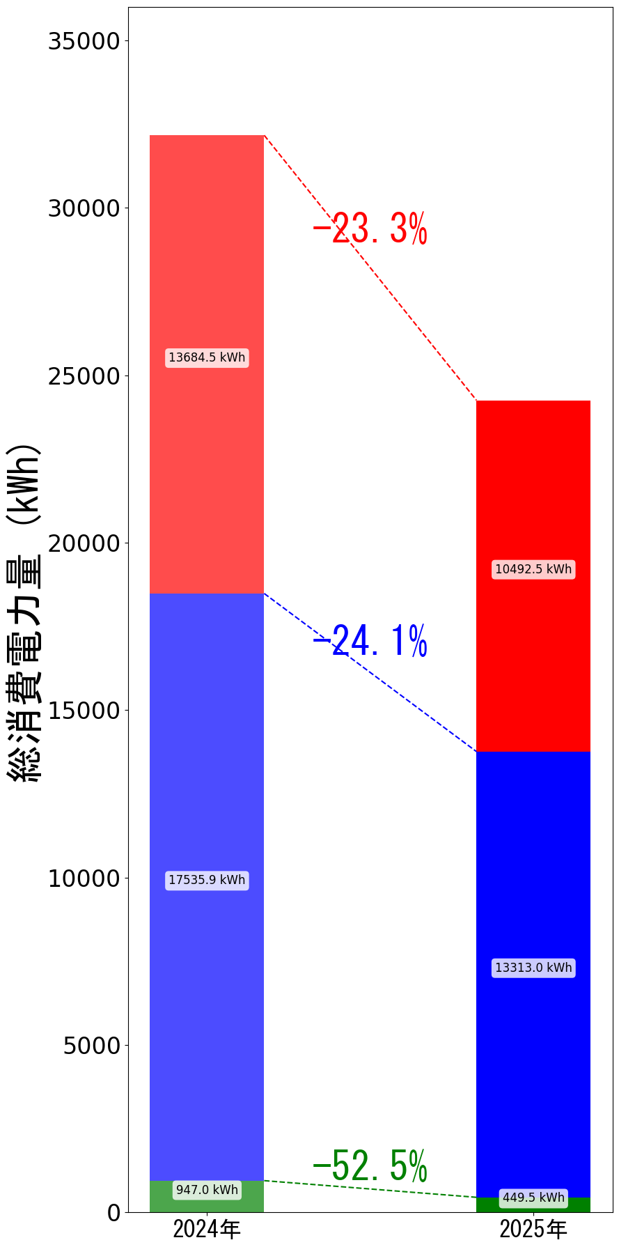 | 暖房期(1,2,3,12月) | −4,969 kWh | −52.1% |