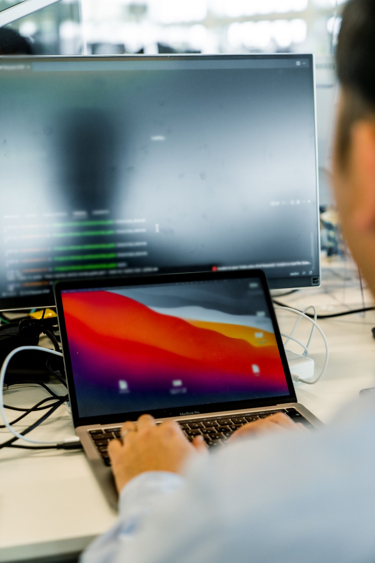 今メインで取り組んでいるのは、クラウドやアジャイル、DevOpsといったモダンなシステム開発のやり方を広めていく活動です。多くのプロフェッショナルな外部会社とも協力しながら、ダイキンならではのシステム開発ルールを定めています。さらにそれを組織内で活用や再利用できるよう、コードやアーキテクチャを共有する仕組みも構築していっています。さらにこれらのルールが現実と乖離していかないよう、実際の開発にも様々なロールで参画し、多くのシステムの設計や実装に関わっています。特に最近深く携わっているのは、東大発のベンチャー「FairyDevices社」と共に構築している、ウェアラブル端末を活用したフィールドエンジニアサポートシステムです。このシステムは端末との連携、端末のビデオを介した映像によるサポート機能、映像へのデータ処理、社内外のシステムとのデータ連携など、多種多様な機能が必要となります。それらの実現のため、技術選定やシステム運用、実際の開発の進め方などをアドバイスしつつ、その知見を開発ルールへとフィードバックさせていっています。