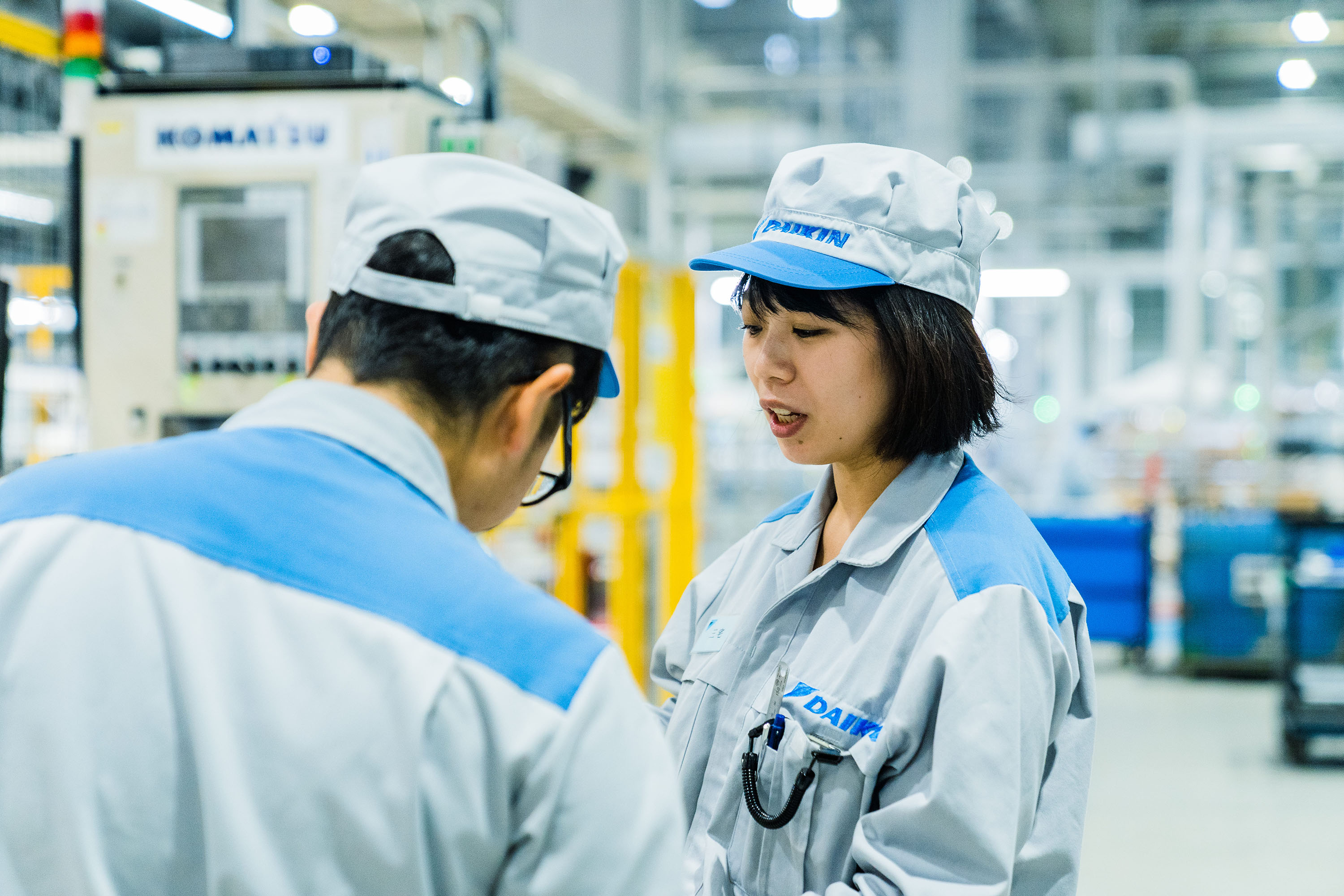 2018年に新しくなった臨海1号工場では、建築計画の段階から参加。生産方法が確立されていない新製品の生産ライン立上げを担当。その後、結婚、出産を経て現場に復帰。