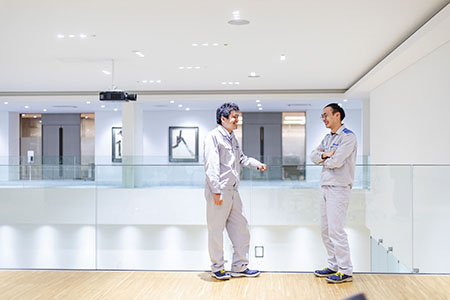 2014年新卒入社。入社後は社内制度を活用し、国内大学へ留学。現在は堺製作所(臨海製造部)の予防保全担当として、主に工場内の製品組立ラインの設備点検や更新工事を手がける。加えて、保全業務システムの更新に伴う、新たな業務システムの内作プロジェクトにも参画。