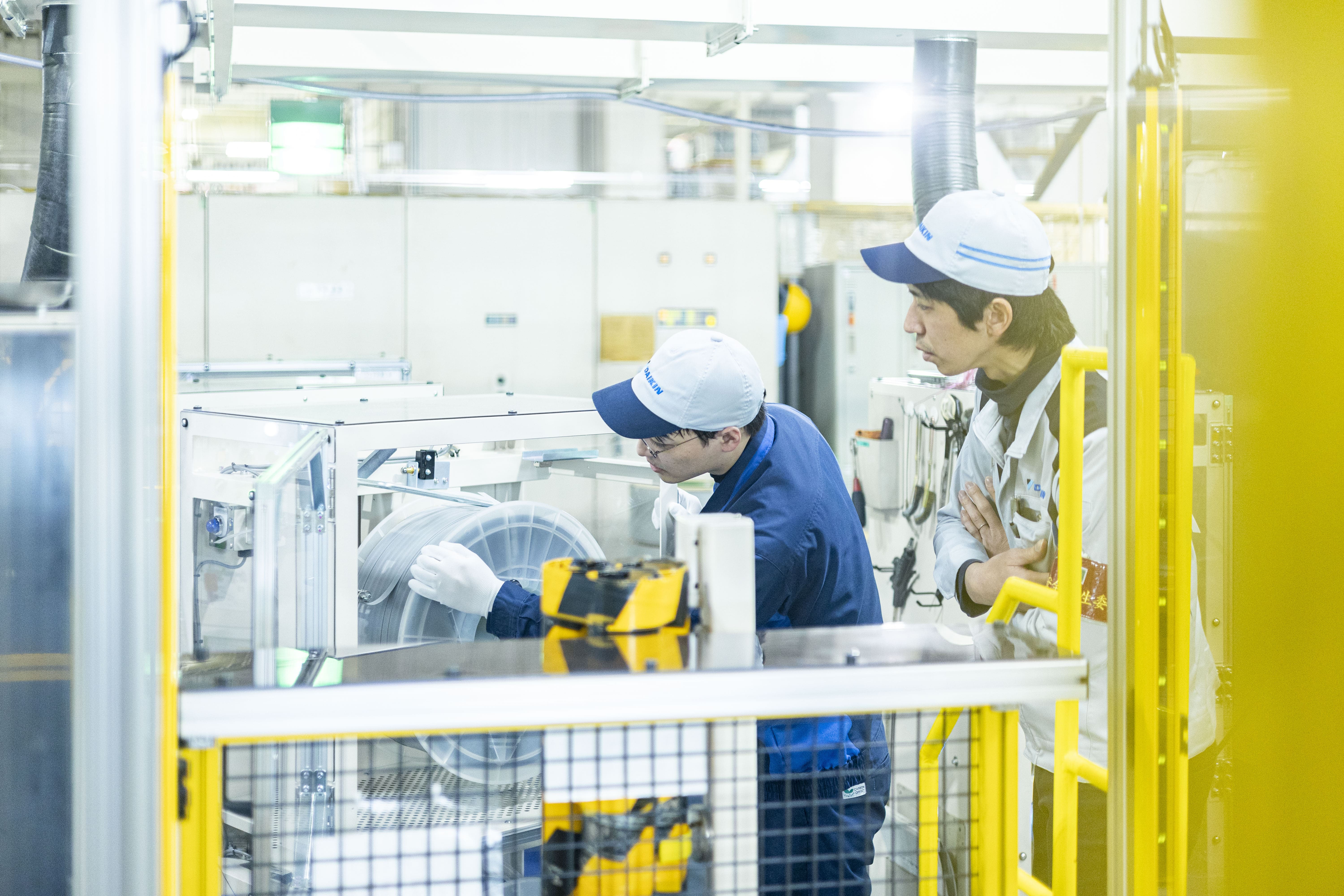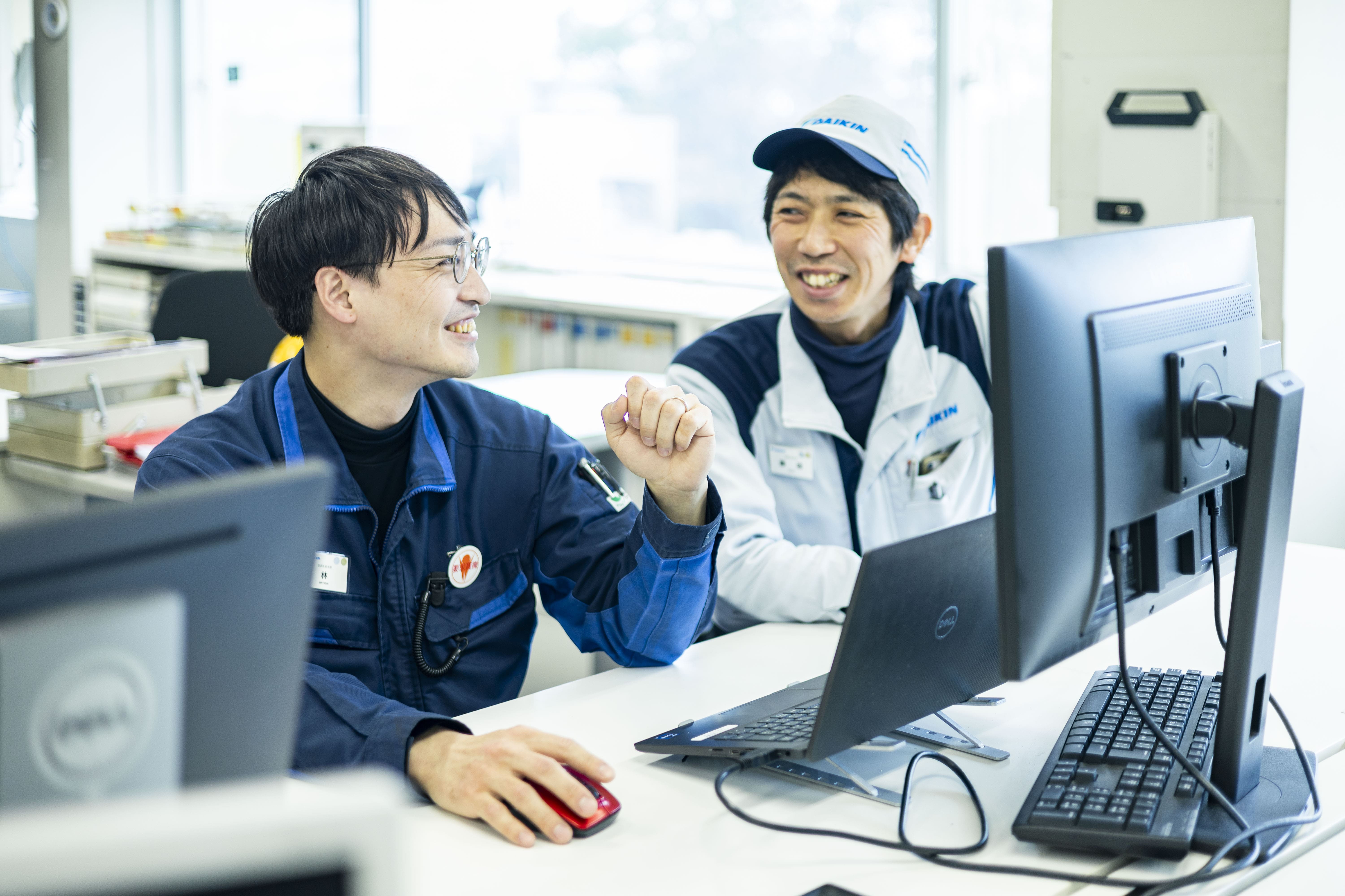 ダイキンは、「挑戦するチャンスにあふれる会社」だと思っています。海外に興味がある人であれば『海外拠点実践研修』に参加できたり、製造部門では、自分で設備を作りたい人であれば『自働化キーマン教育』を受けることができたりといった、挑戦を後押しする教育制度が充実している環境です。