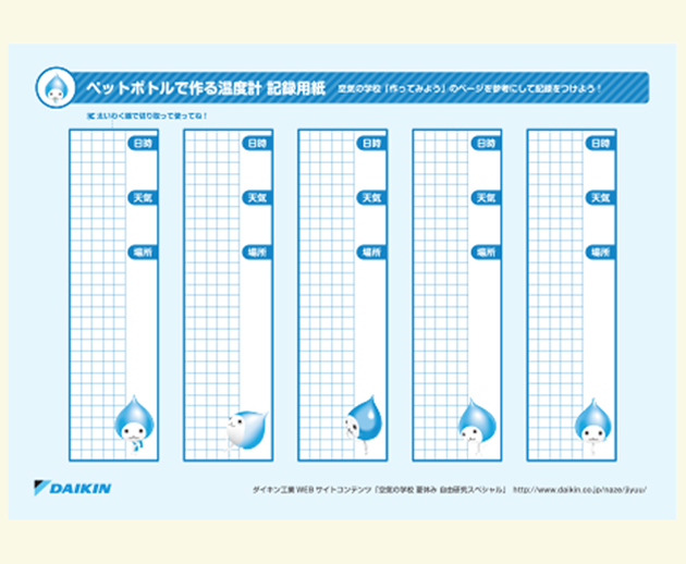 記録用紙をあつ紙にはって、矢印がとどく位置で台に固定したらできあがり!
