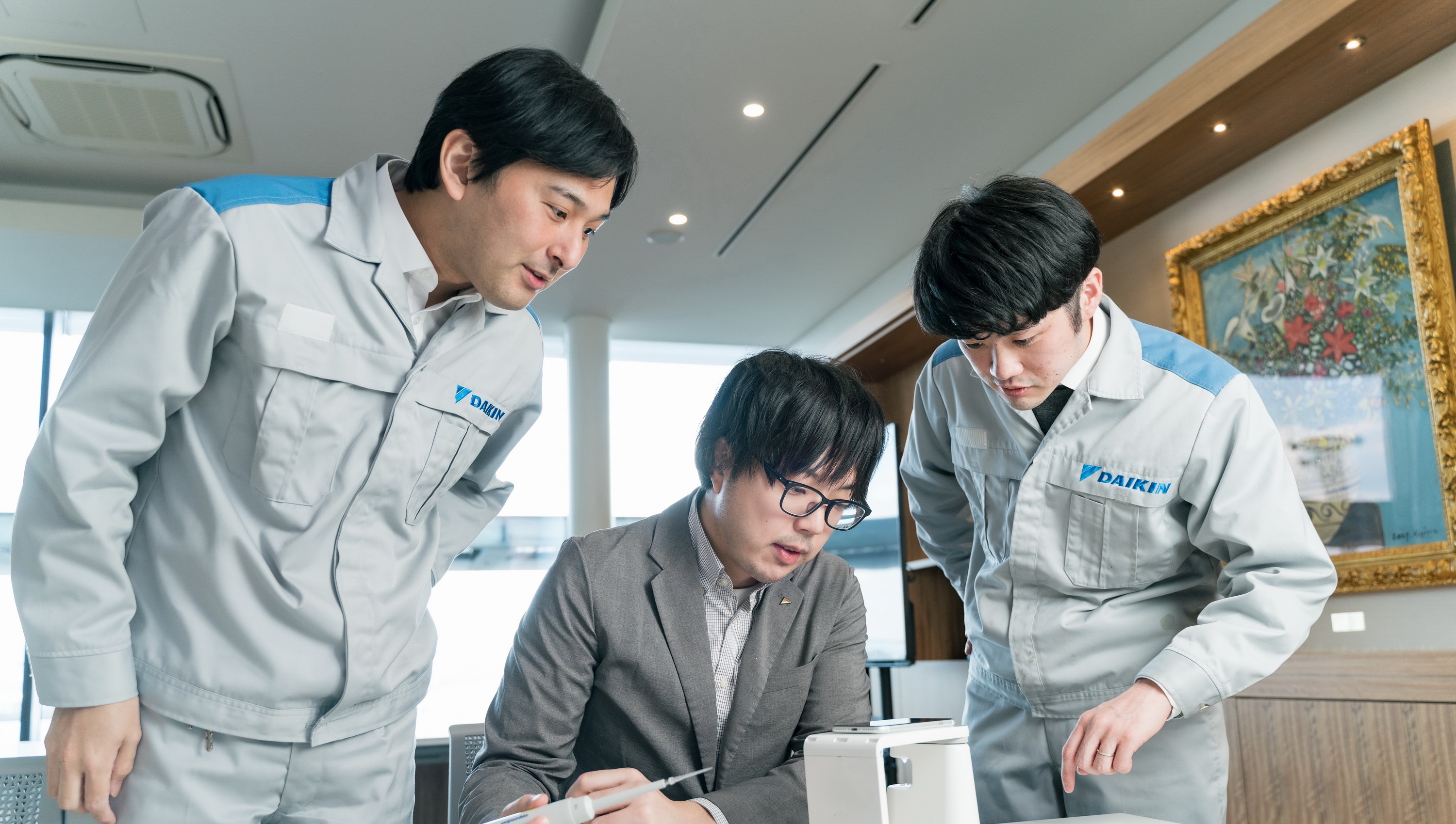 渋谷:ダイキンは、空調事業だけでなくフィルタ事業もグループ会社を通じてワールドワイドに展開しています。そのため、いろいろな国で面白い仕事ができると思います。実際に私もEU圏やアジア圏など、これまで計13カ国に技術打合せやテクニカルサービスなどで出張を経験してきました。海外で活躍したい、語学が堪能で活躍の場を求めている方々にも十分に魅力のある職場だと思います。興味のある方は、ぜひ我々と一緒に仕事をしましょう!