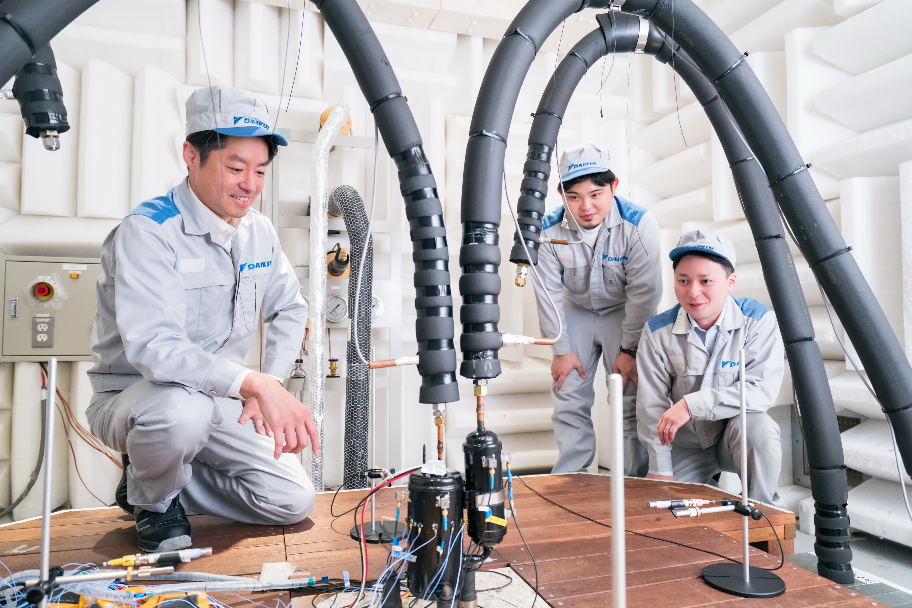 研究開発は、誰もがやったことのないことにチャレンジしなければならない仕事です。とても苦労することも多いと思います。しかし苦労するからこそ、他社とは異なる製品、差別化した製品を生み出せると思っています。ダイキンには、そういった新しい挑戦ができる環境があります。逆にチャレンジせずに、何もしないことのほうが社風的にはいけないという雰囲気があります。ですから私自身、何か壁にぶつかっても、楽しみながら開発できるように努めています。すると必ず誰かしら周囲の人が相談に乗ってくれたり、後押ししてくれたりします。難しいことに挑戦したい人は、ぜひ仲間になって欲しいですね。