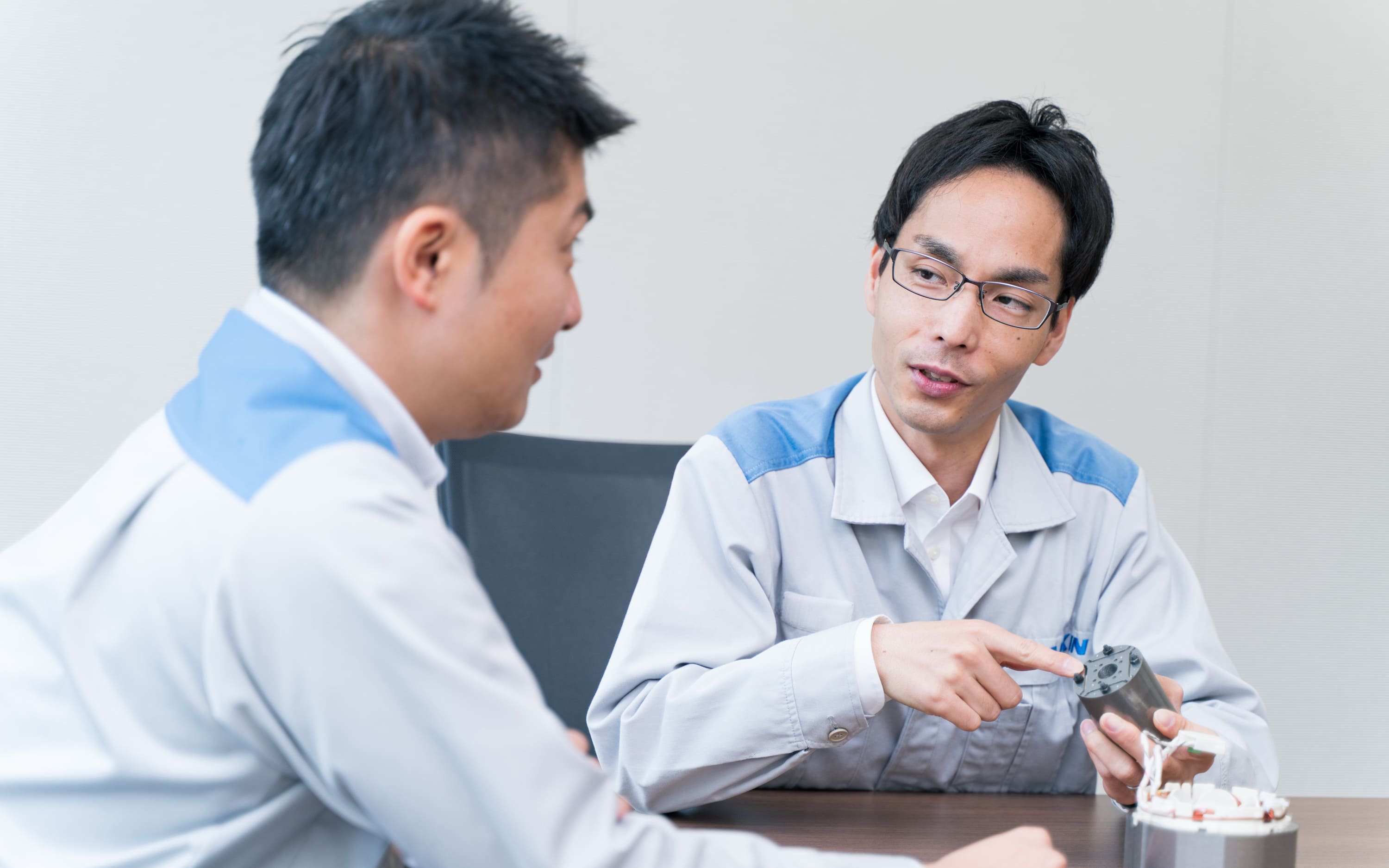 エアコンの圧縮機やファンなどの動作にモータは不可欠。ダイキン工業テクノロジー・イノベーションセンター(TIC)で、高効率なDCリラクタンスモータの開発を担当する平野正樹さんと中祥司郎さんは新卒で入社してキャリア10年程になる中堅エンジニアだ。モータに対する課題は時代とともに変わっているが、お二人のモータ開発への取り組みについて伺った。