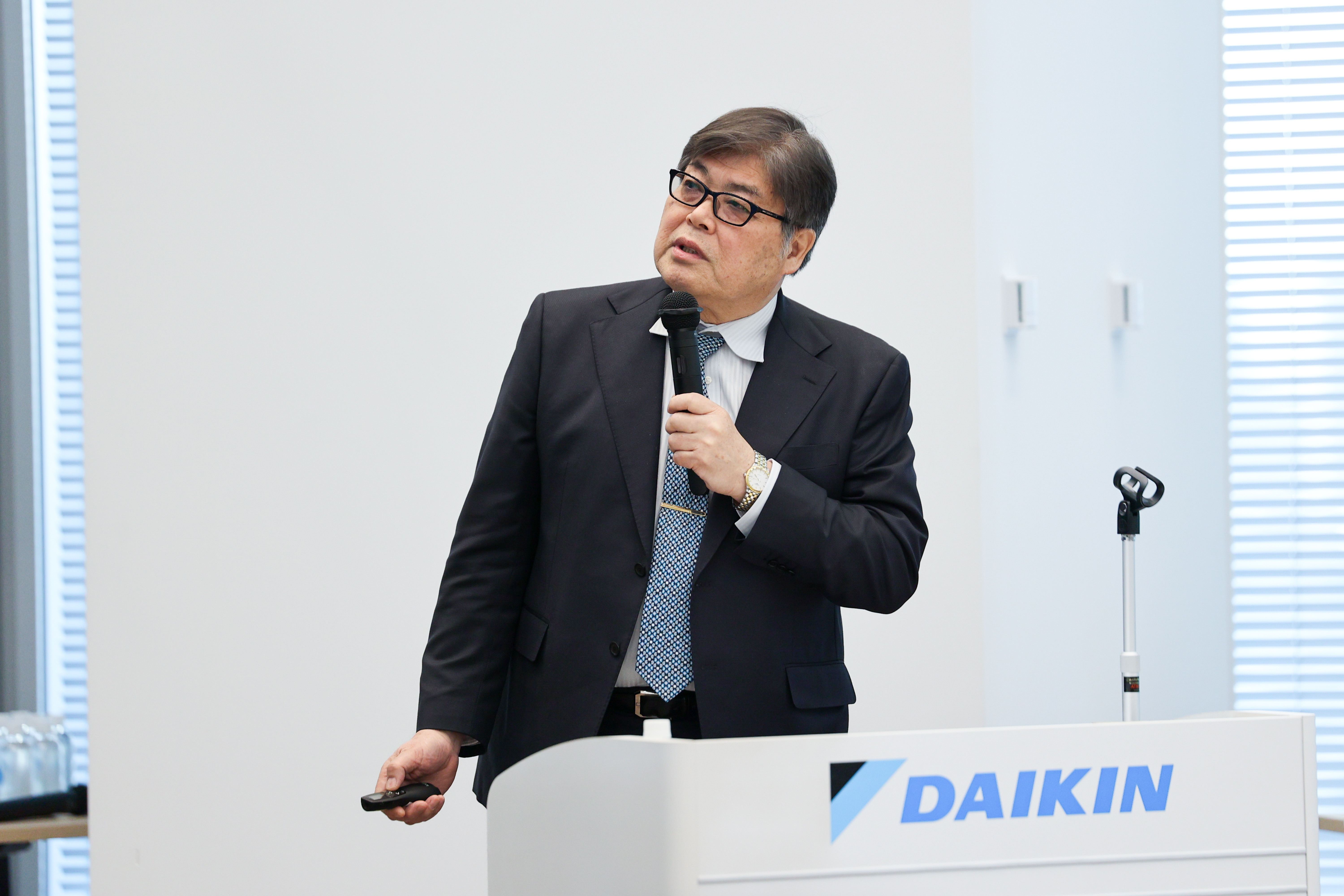 「ヒートポンプは将来を担う有望な産業、日本においても自動車産業に次ぐ一大産業になる。そのコア技術となる圧縮機やモータ、インバータなどの技術は、日本が強みとする技術。欧州では、燃焼暖房からヒートポンプへと産業の中心が日本メーカーや中国メーカーの得意分野に移っていくことが警戒される中、日本が業界の垣根を越えて結束し、切磋琢磨しつつも共に技術力を高めていくことが重要であり、皆様と協創・協業させて頂きたい。」