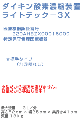 ダイキン酸素濃縮装置ライトテック-3X(標準タイプ)